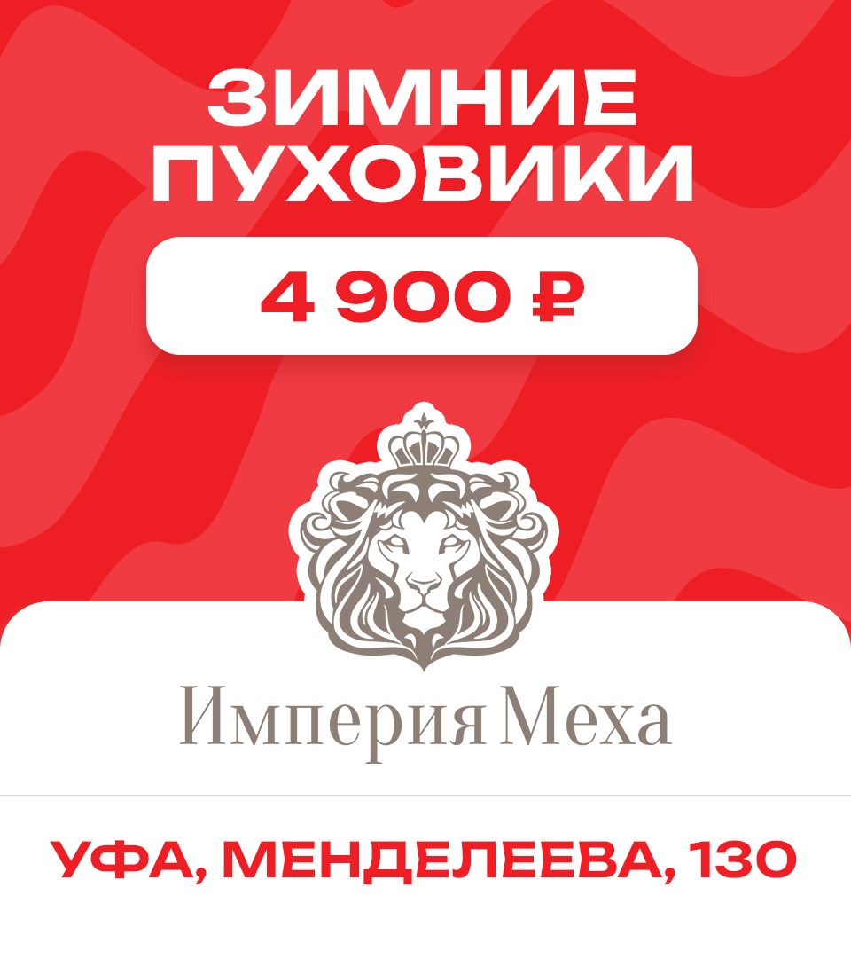 Рассрочка на 30000 товаров в “Империи Меха”, без первоначального взноса и переплат, до 36 месяцев! Действие акции с 16.12.2024 по 22.12.2024 г. Подробности уточняйте у продавцов-консультантов.