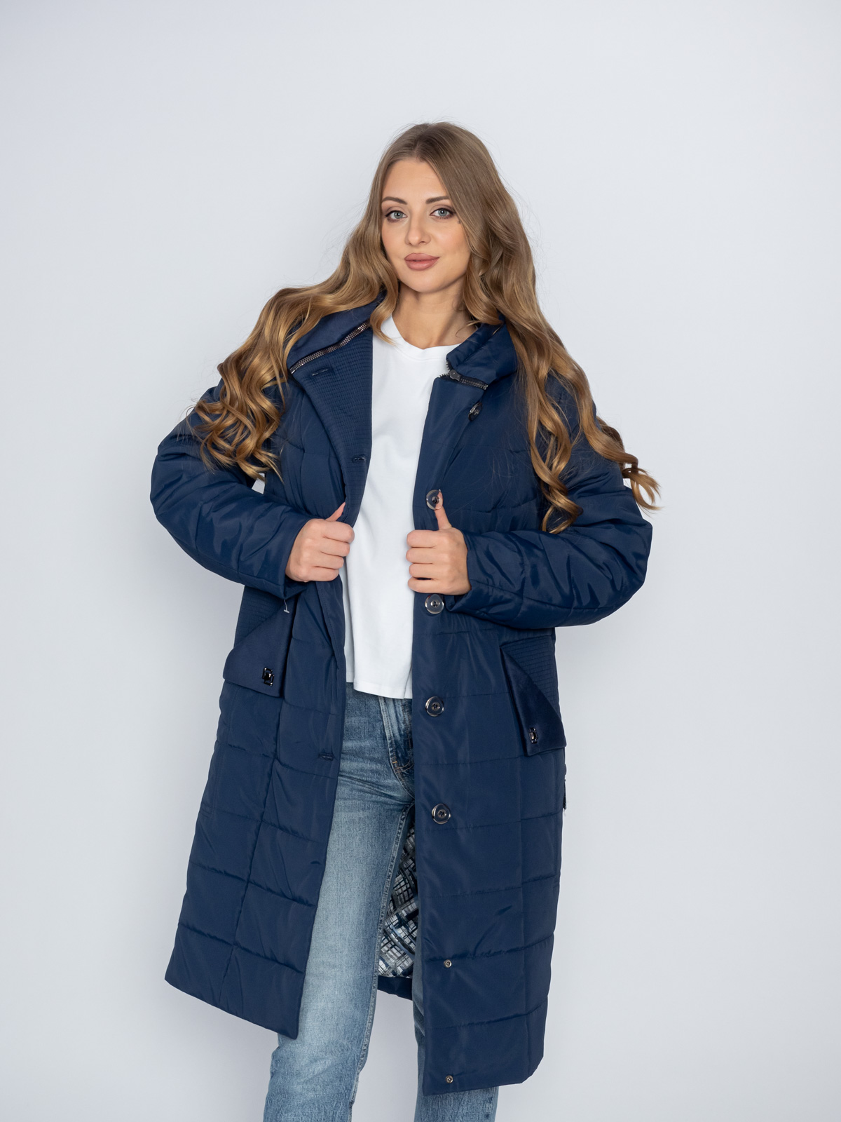 Пуховики за 4900Пуховик женский Кураж 16 с капюшоном синий