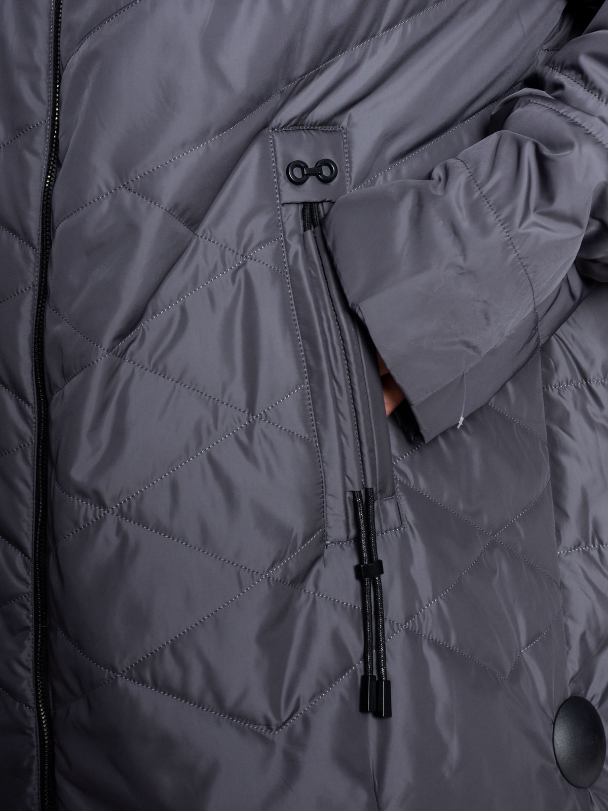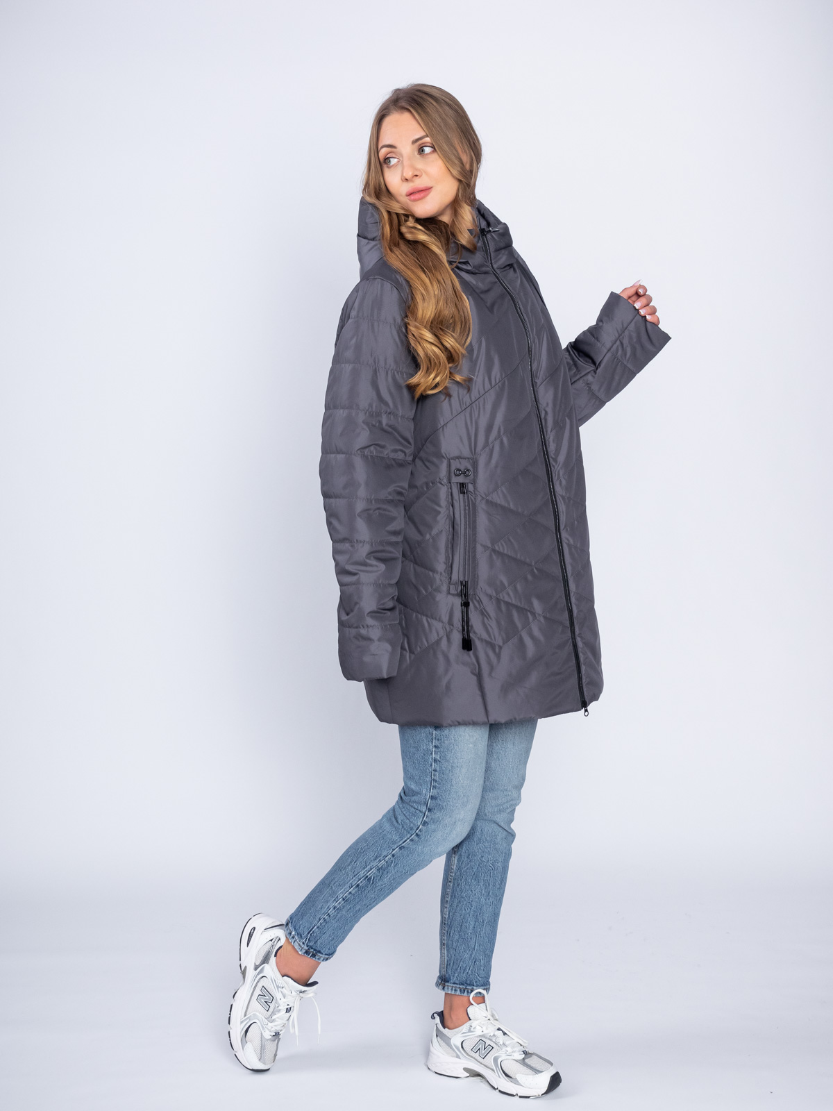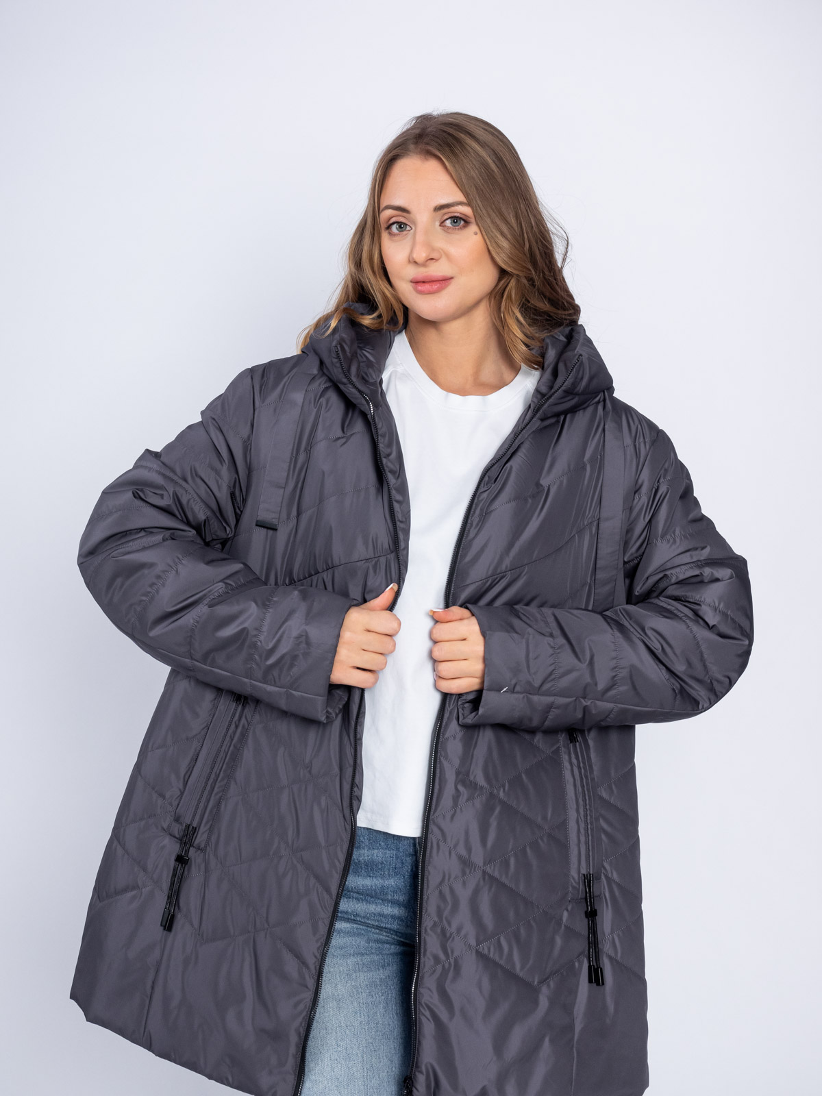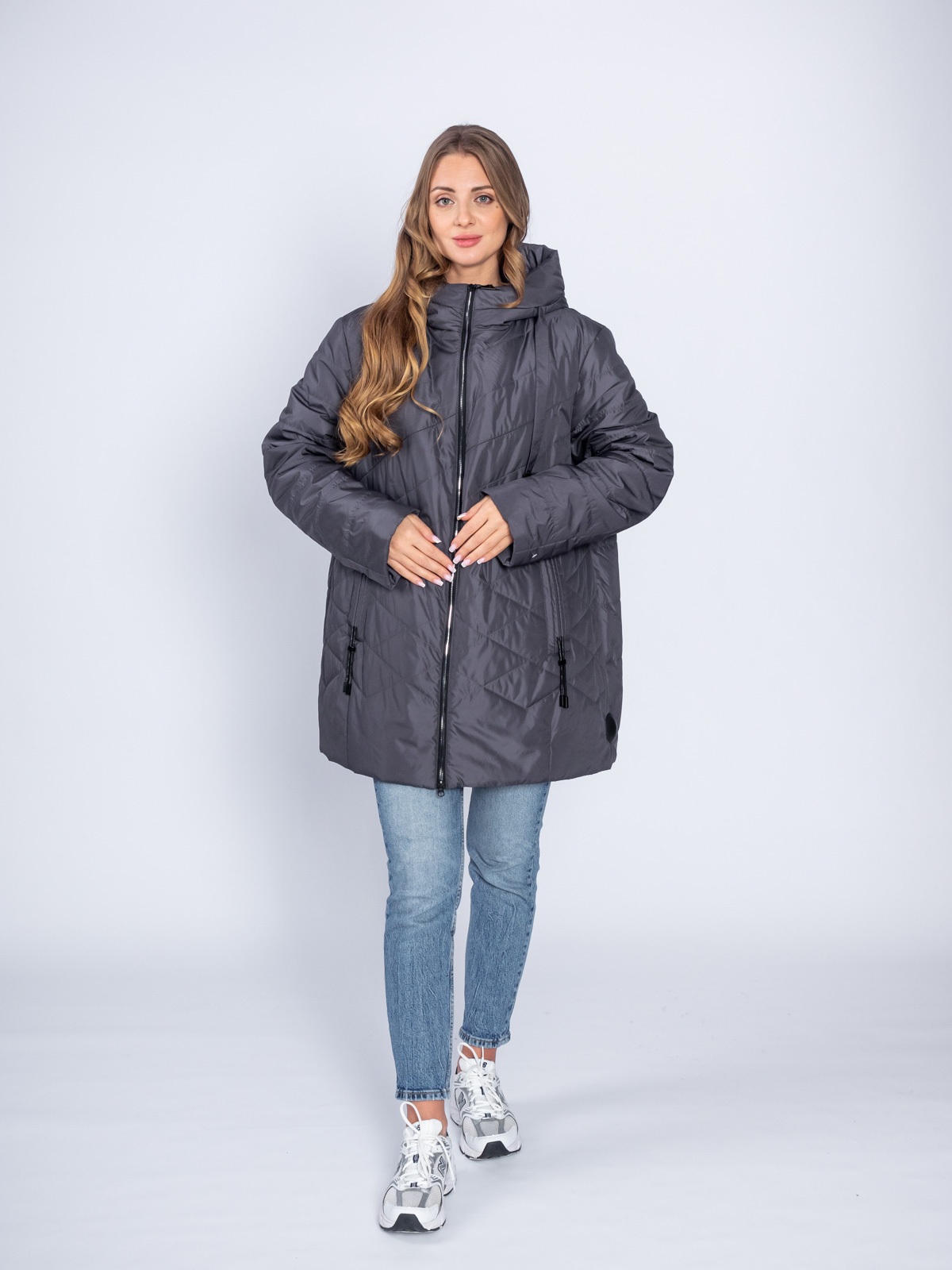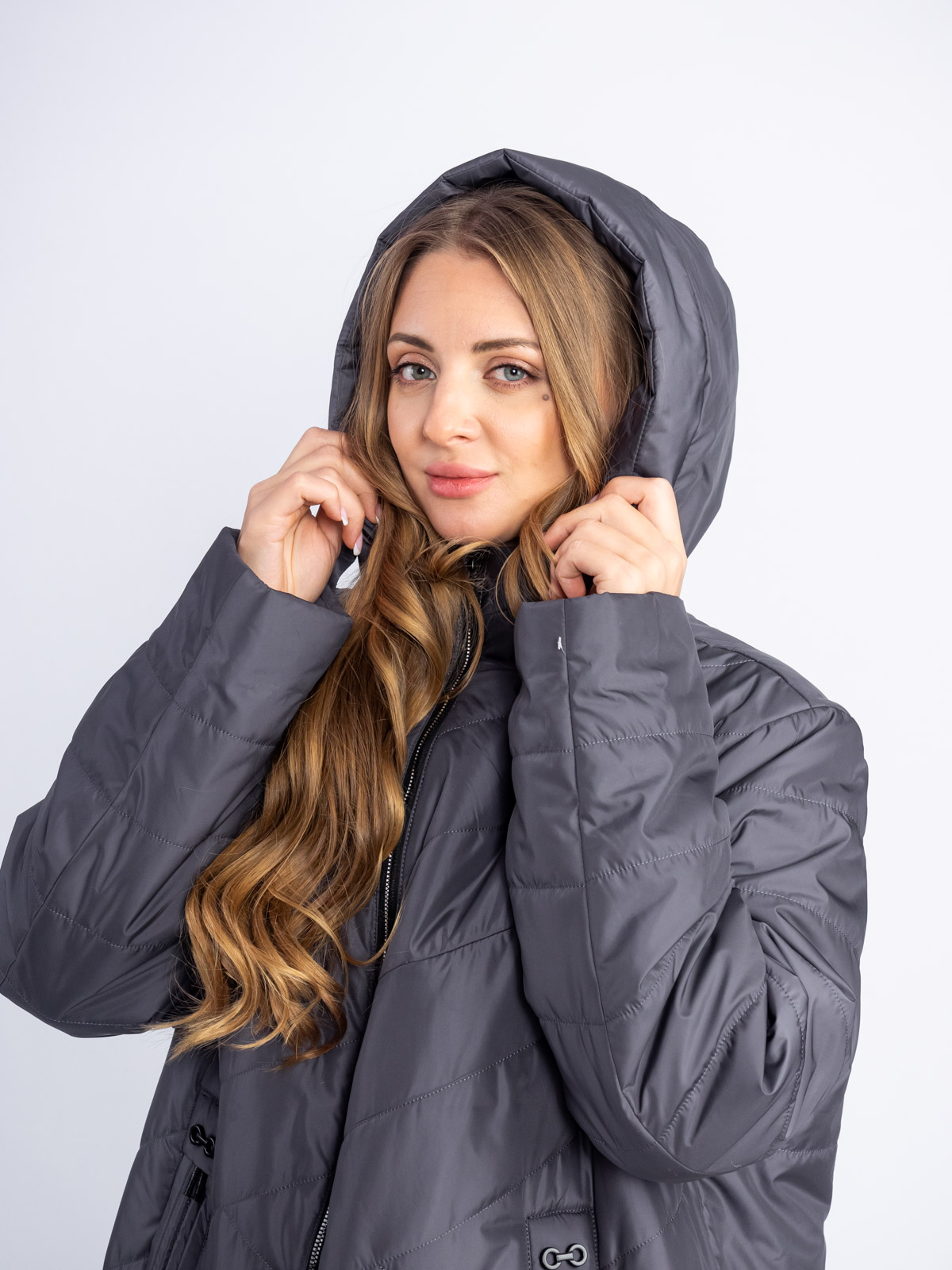 Пуховики за 4900Пуховик женский Мануфактура Носова 10853 с капюшоном серый