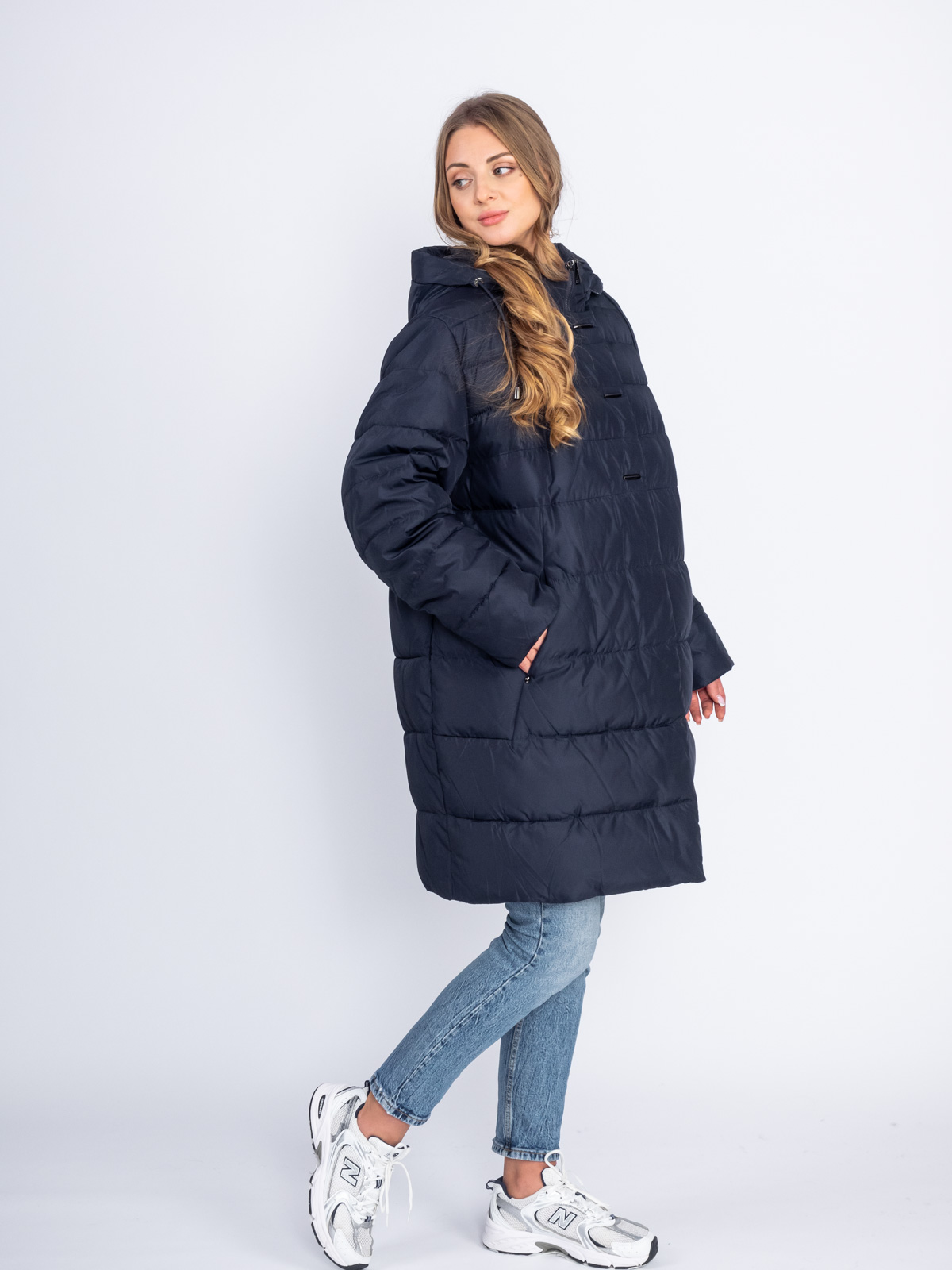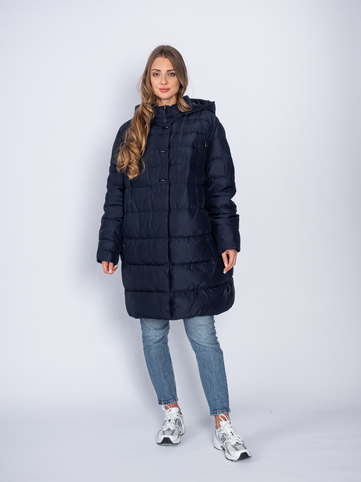 Пуховики за 4900Пуховик женский Мануфактура Носова 18-615 с капюшоном темно-синий