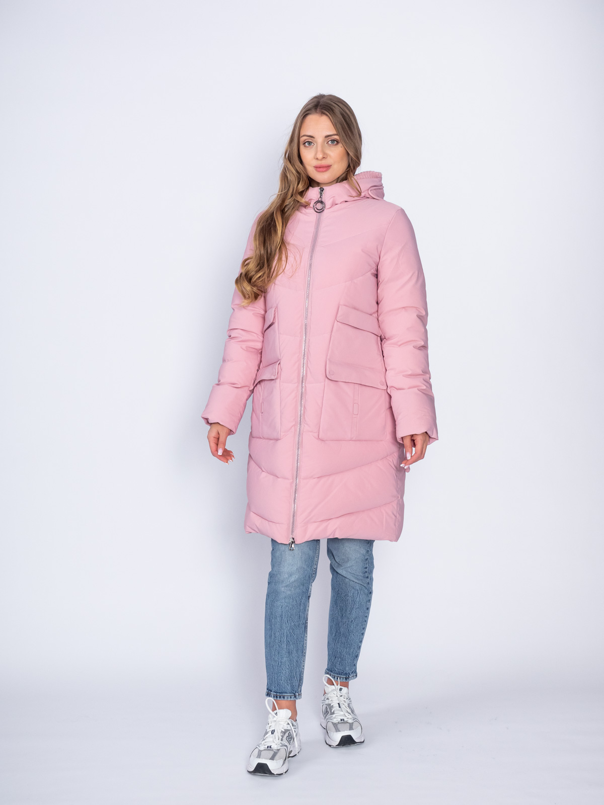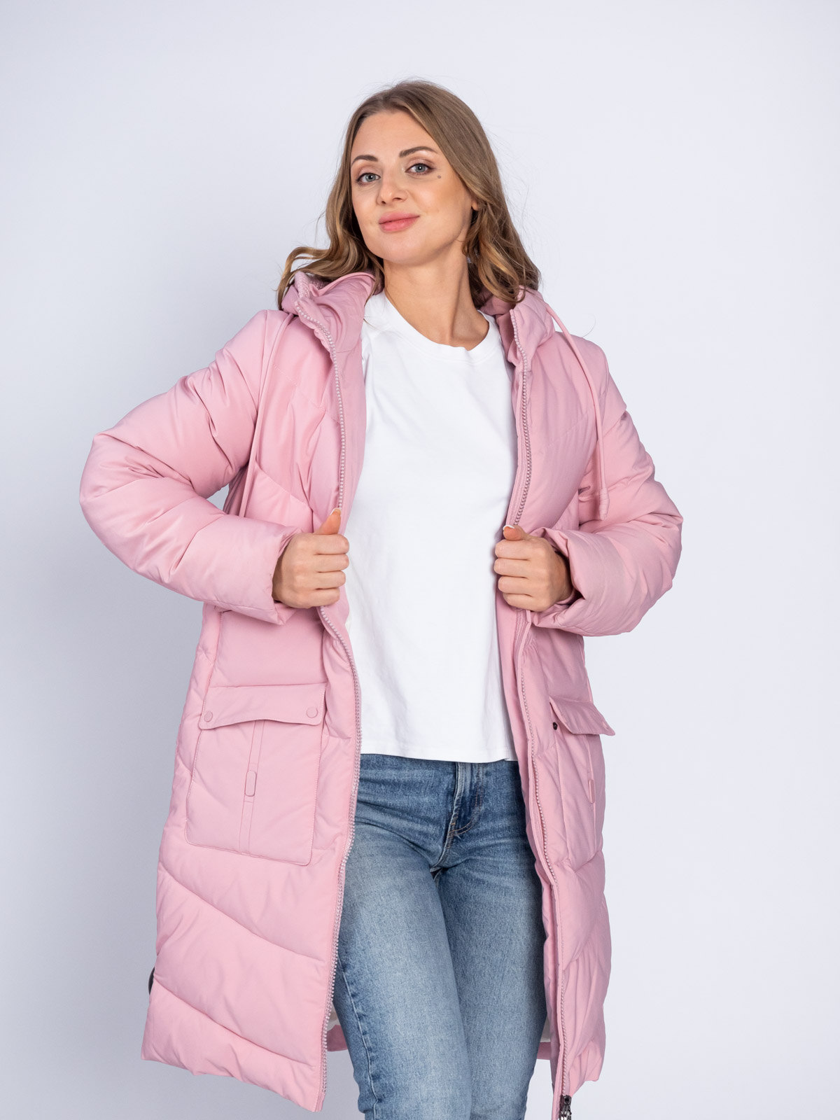 Пуховики за 4900Пуховик женский Мануфактура Носова 19162 с капюшоном розовый