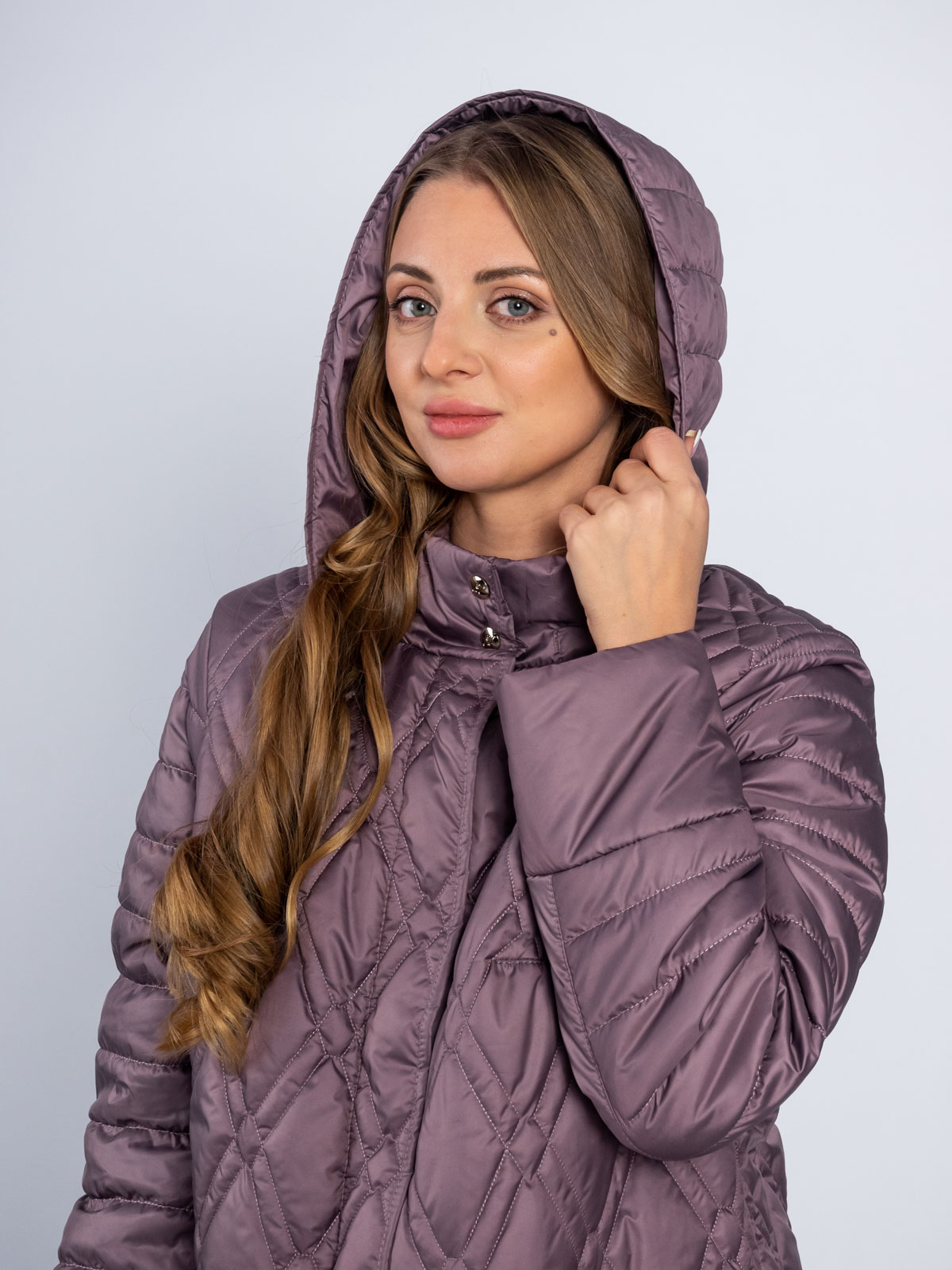Пуховики за 4900Пуховик женский София с капюшоном сиреневый