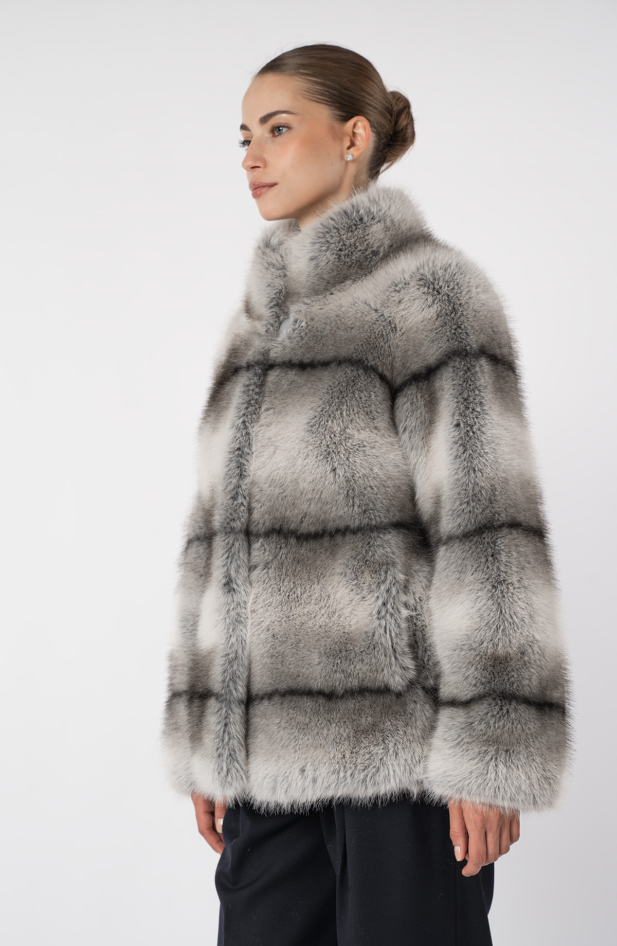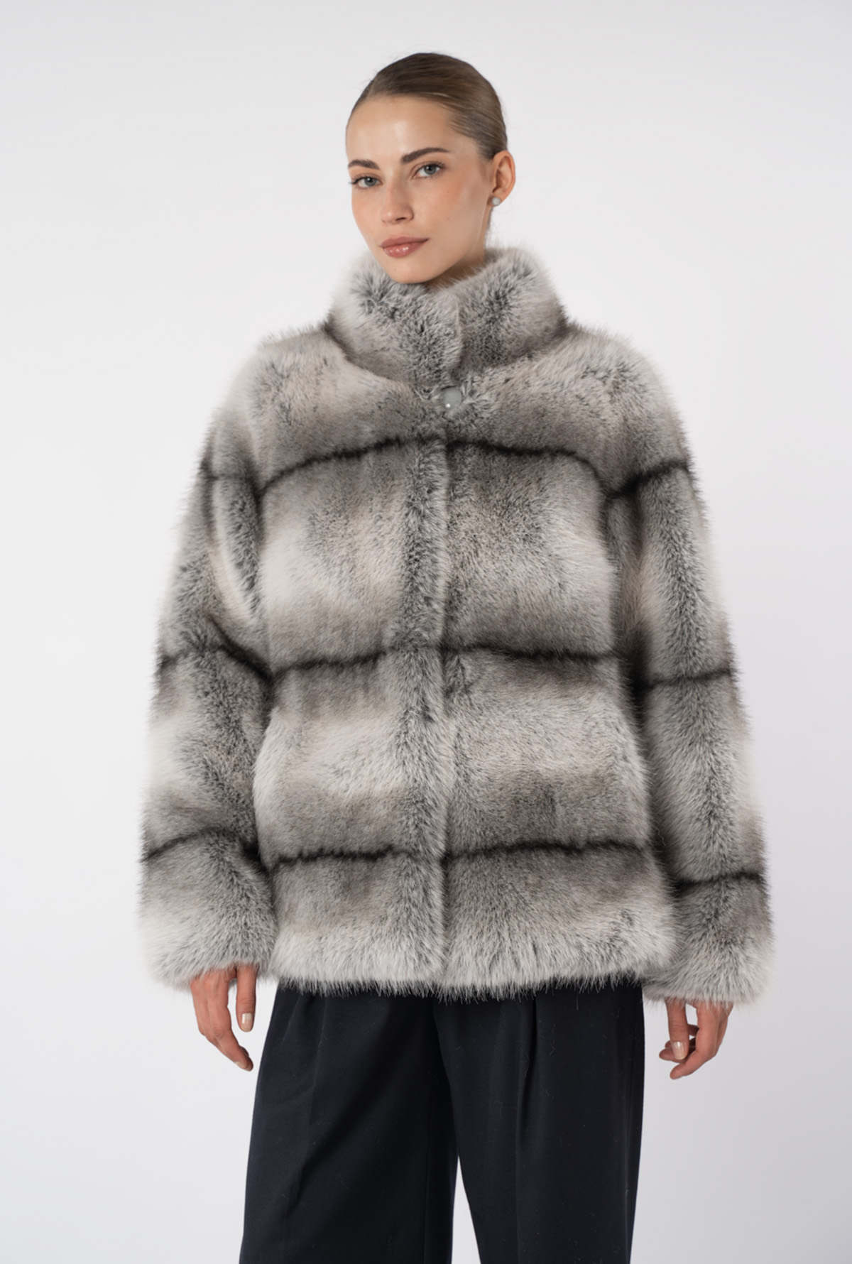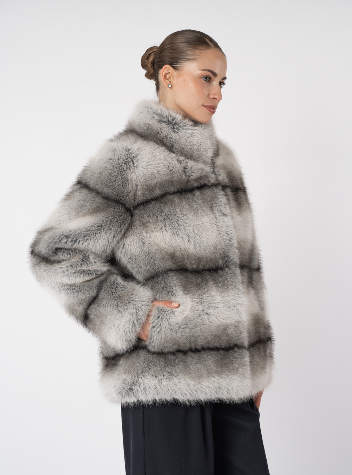 Эко-мехШуба женская из эко меха под енота Дианель Э-255 Р
