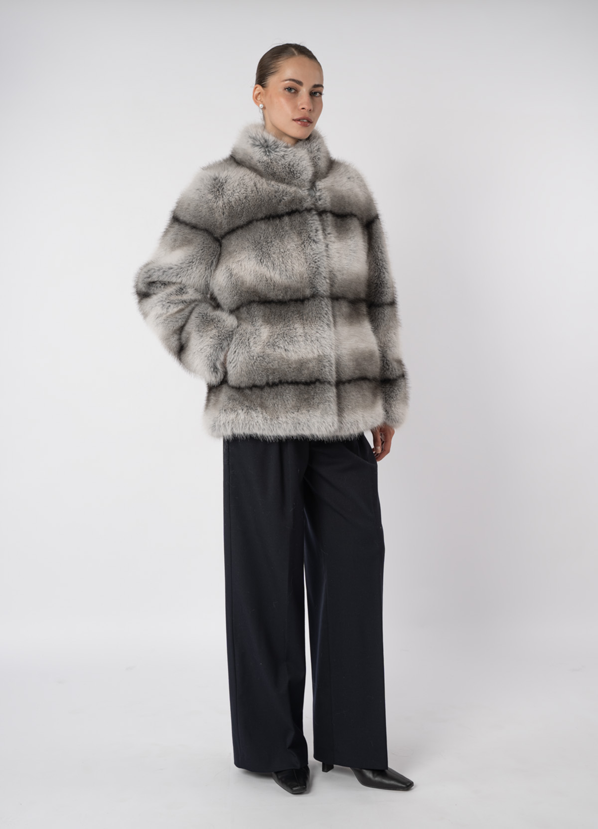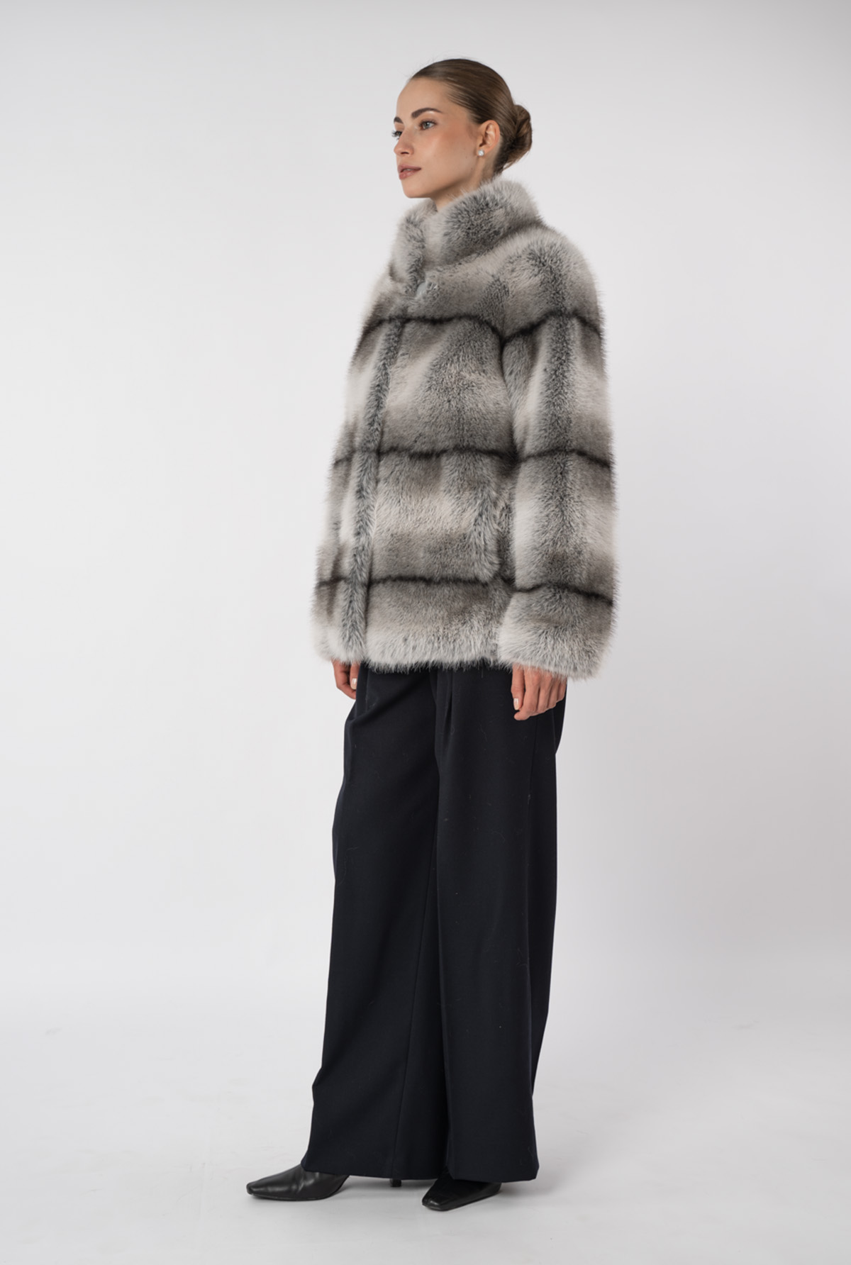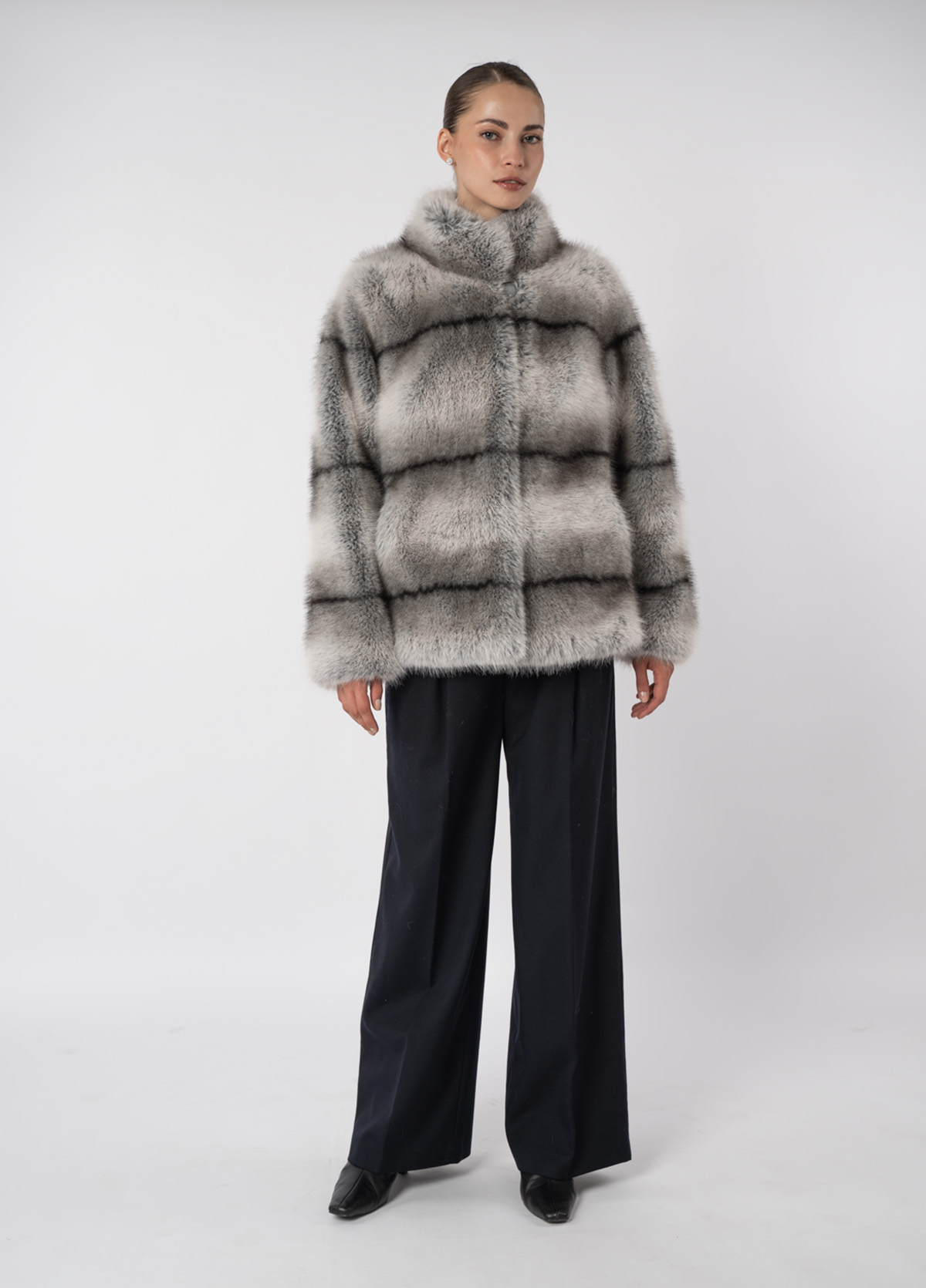 Эко-мехШуба женская из эко меха под енота Дианель Э-255 Р