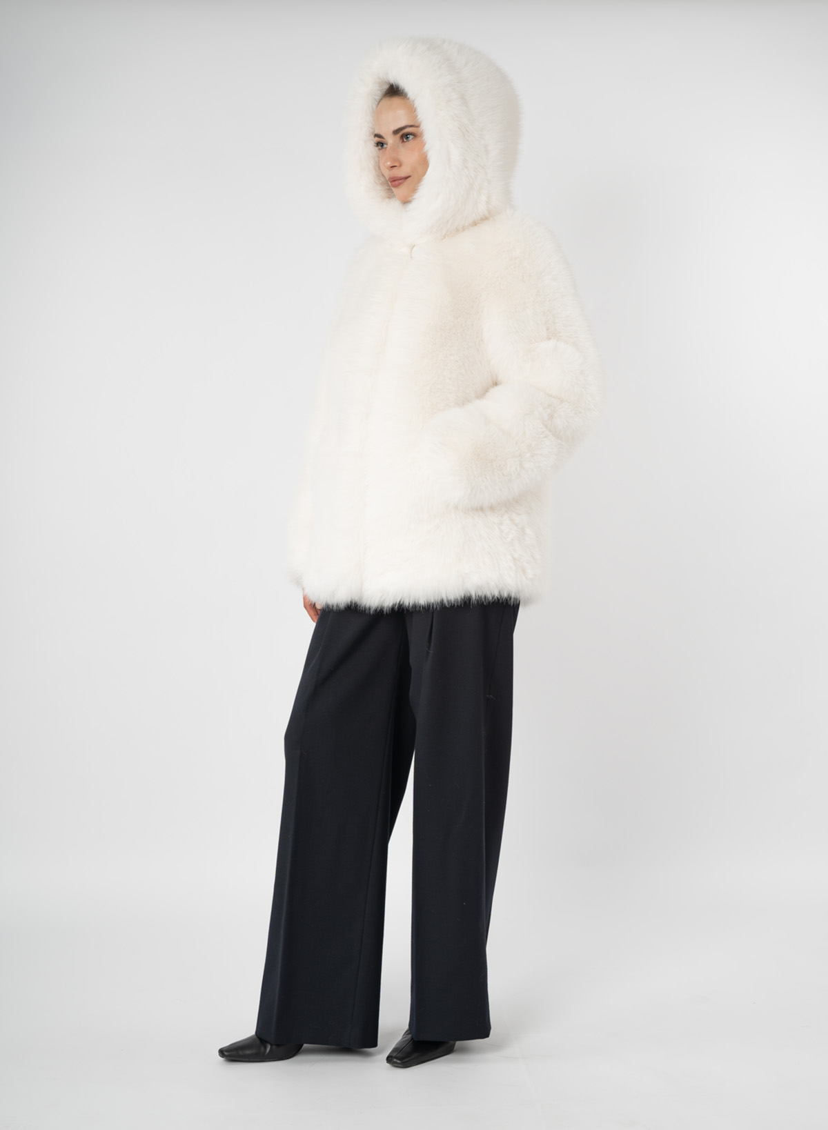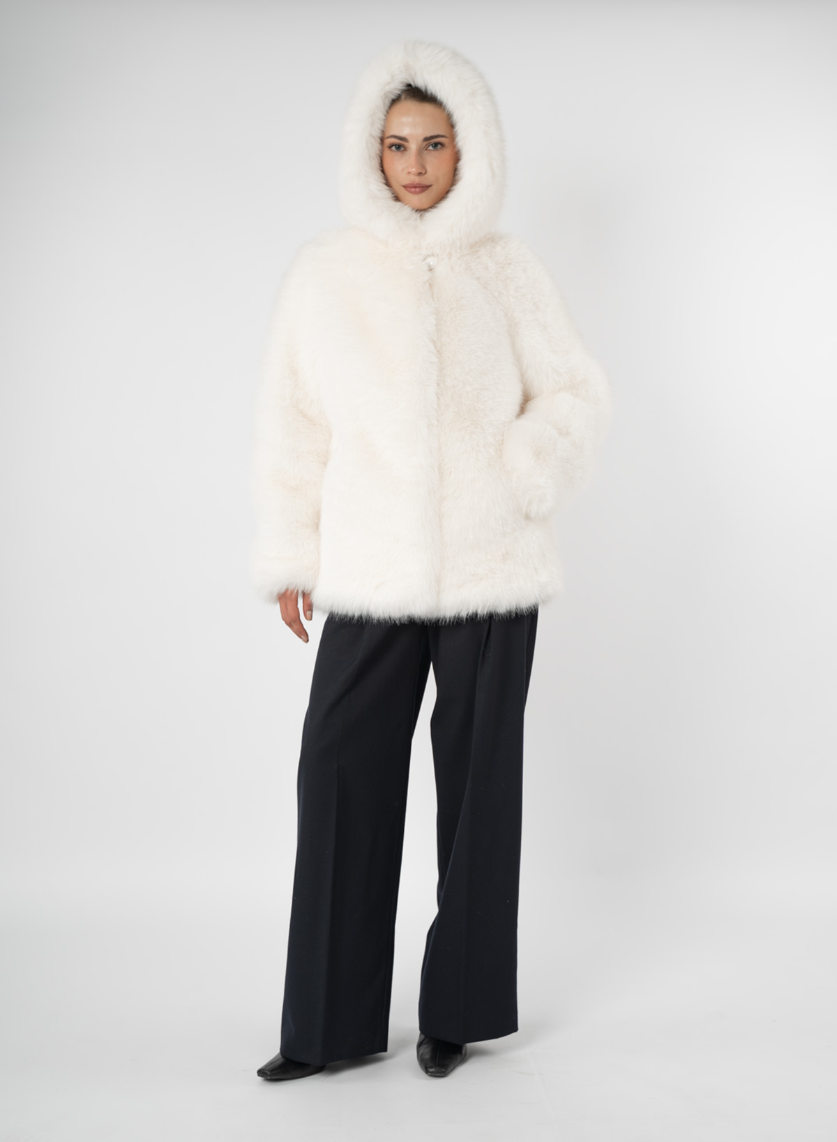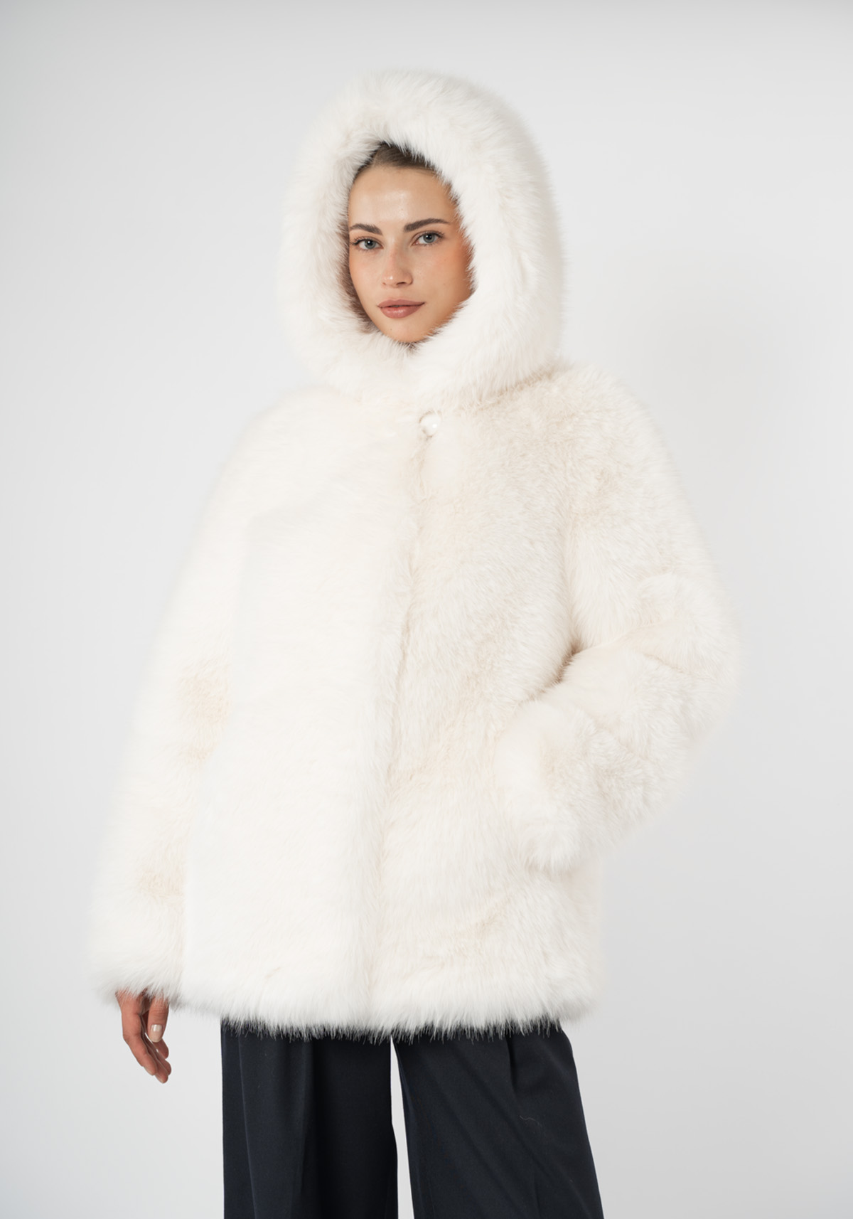 Эко-мехШуба женская из эко меха под песец с капюшоном Дианель Э-299 Р
