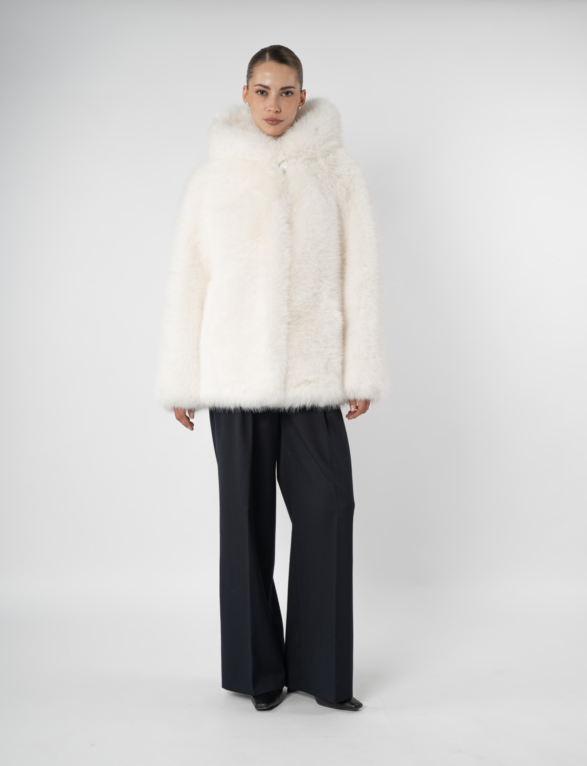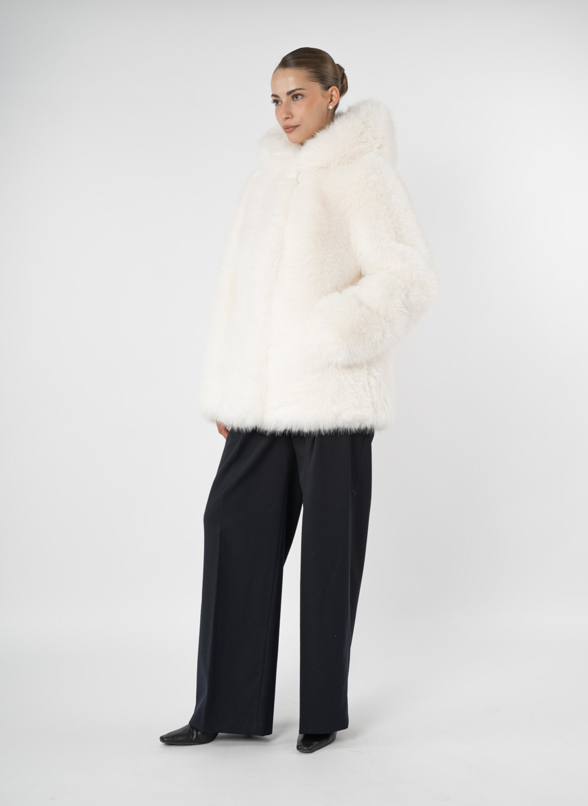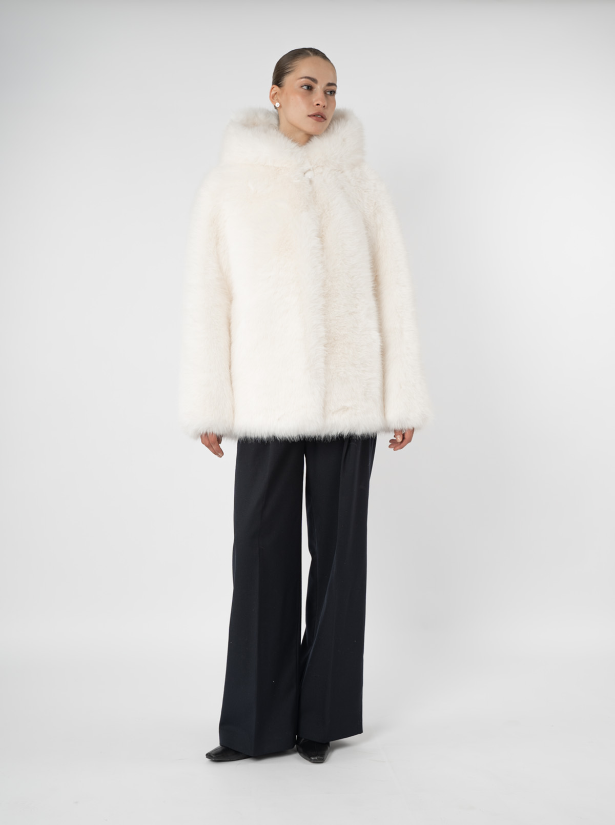 Эко-мехШуба женская из эко меха под песец с капюшоном Дианель Э-299 Р