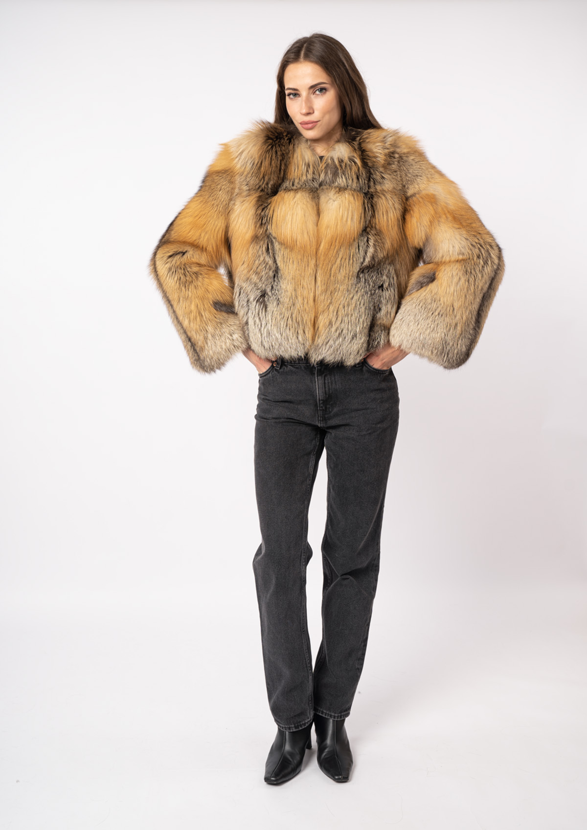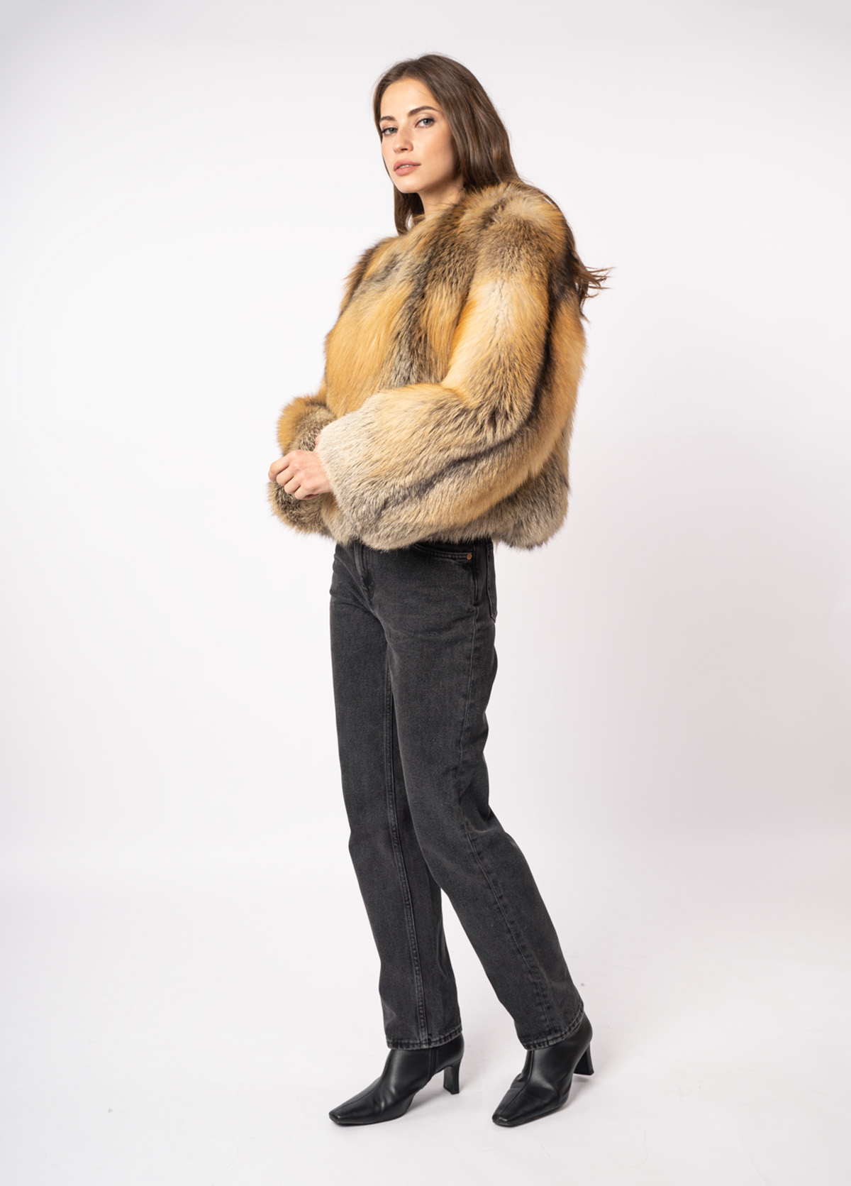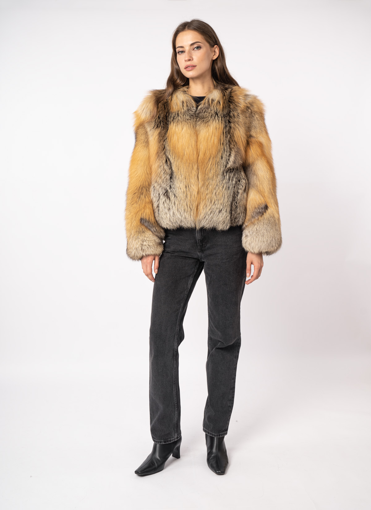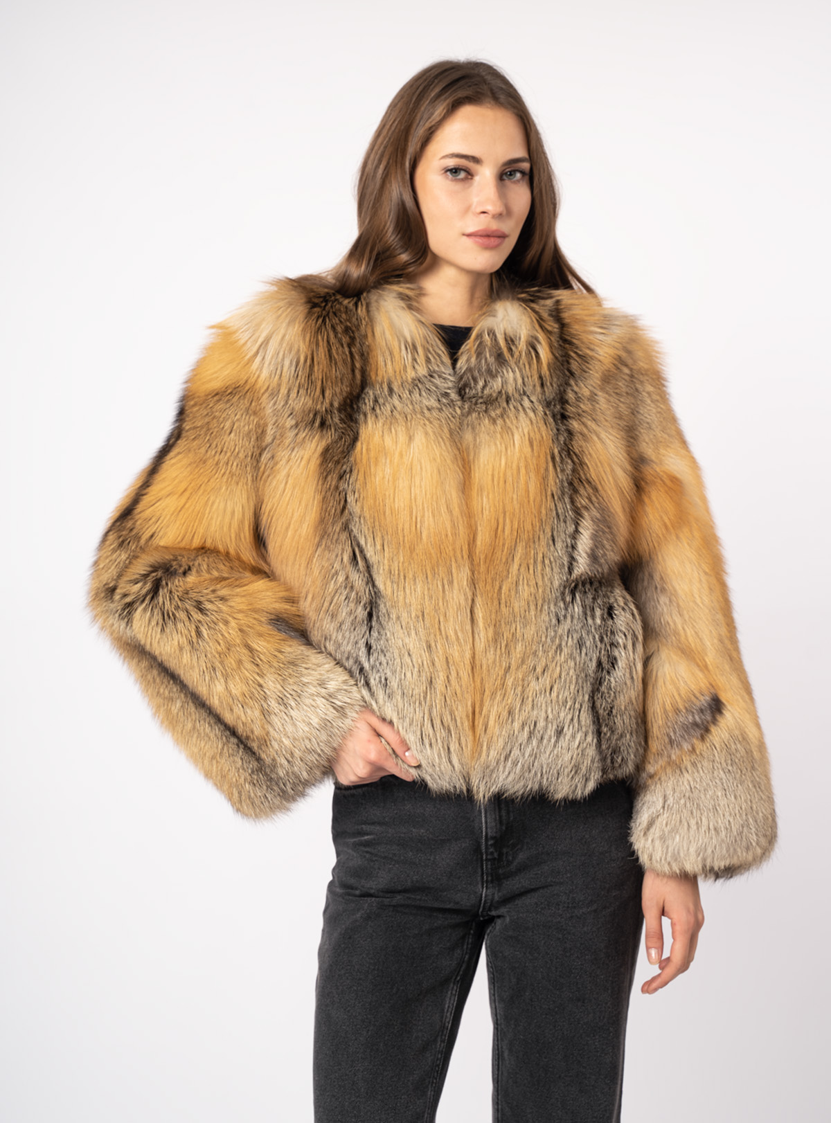 Шуба женская из меха лисицы и кожи Меха России 006