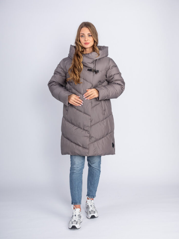 Пуховик женский 9005 с капюшоном бежевый