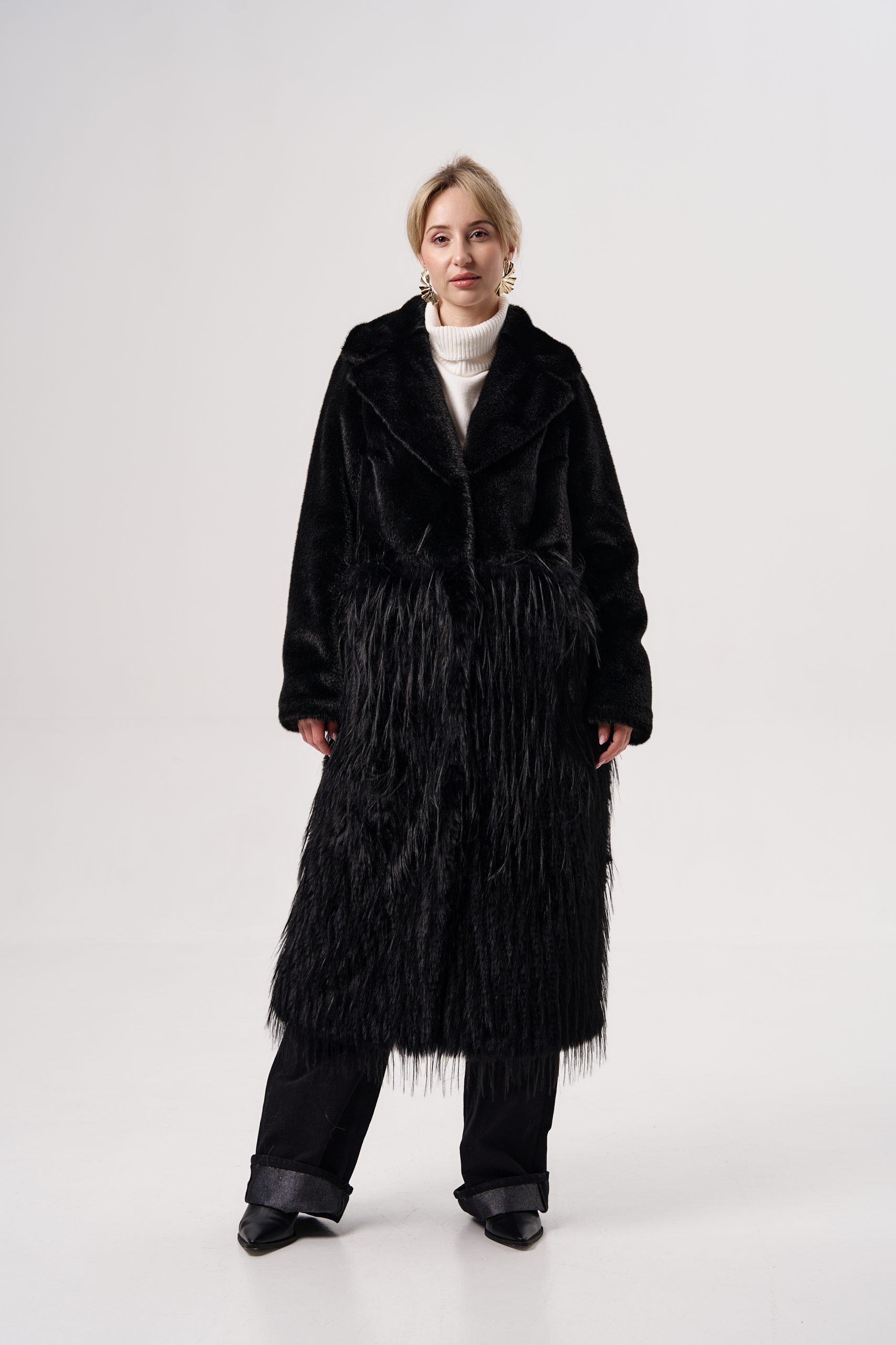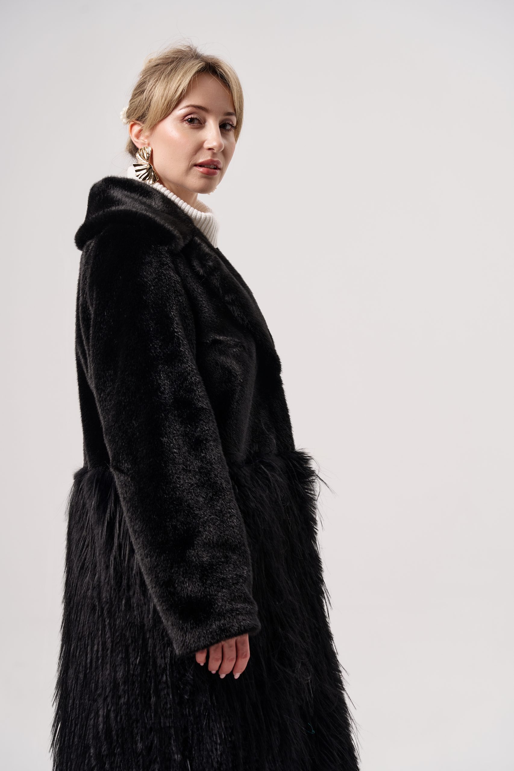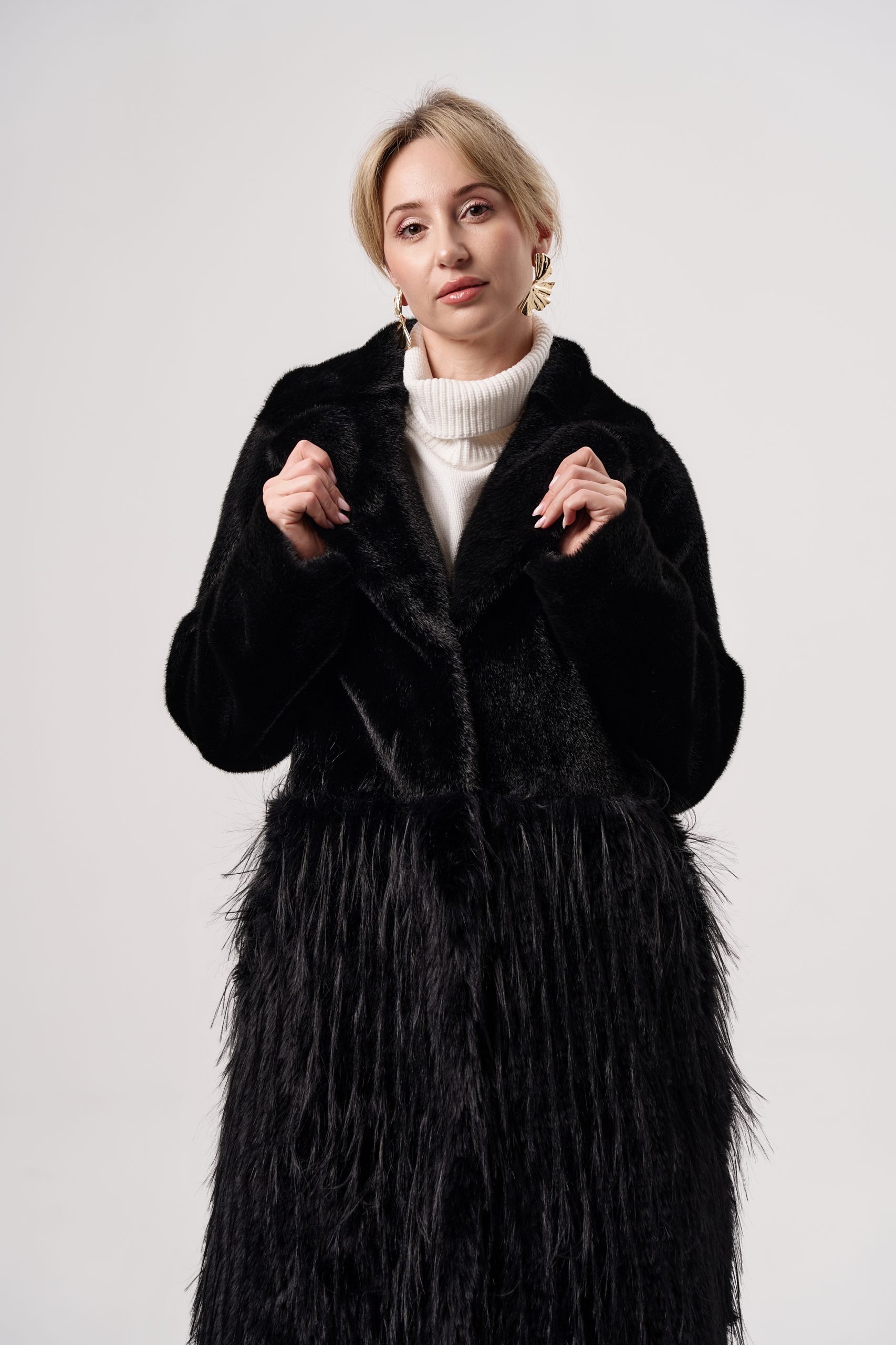 Шуба женская из экомеха норки+страус Alex ЭМ-351