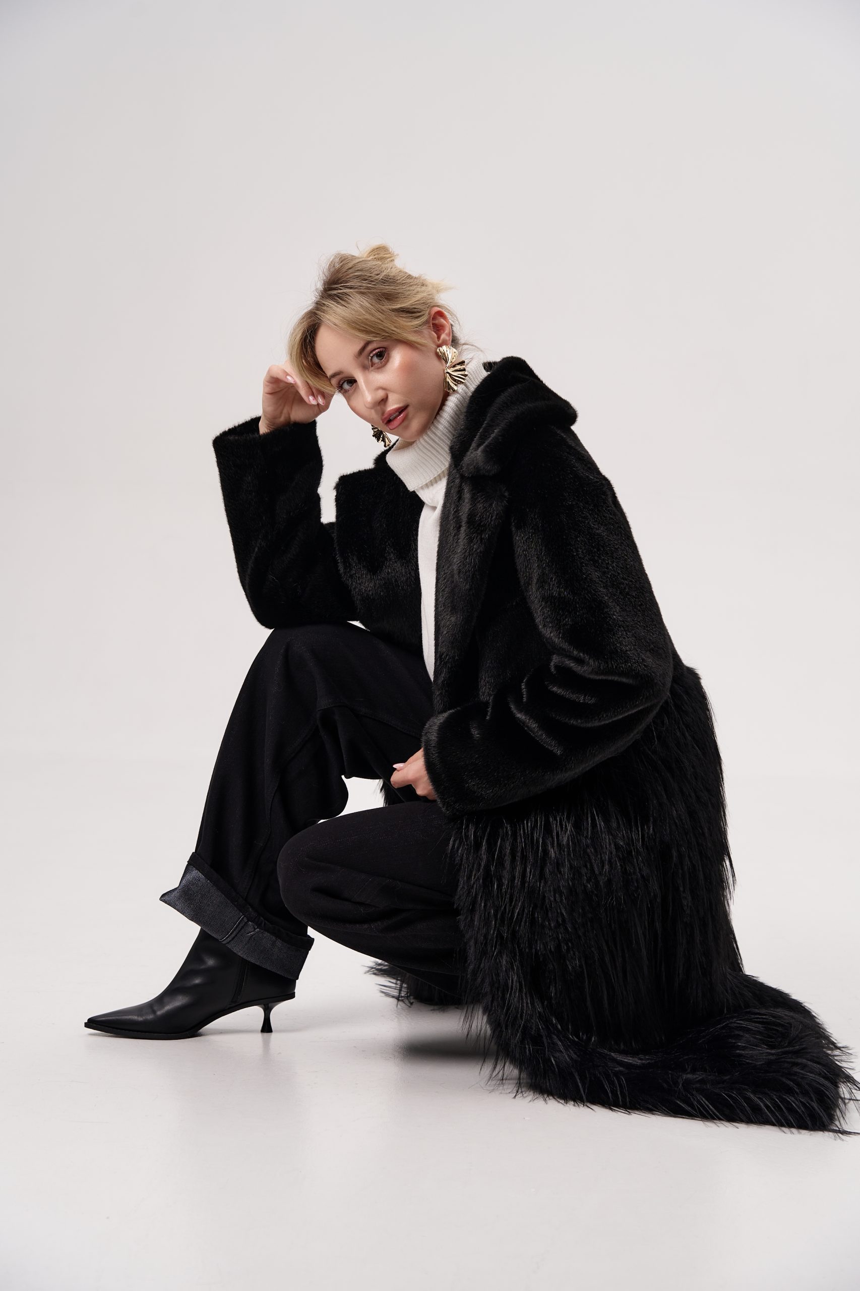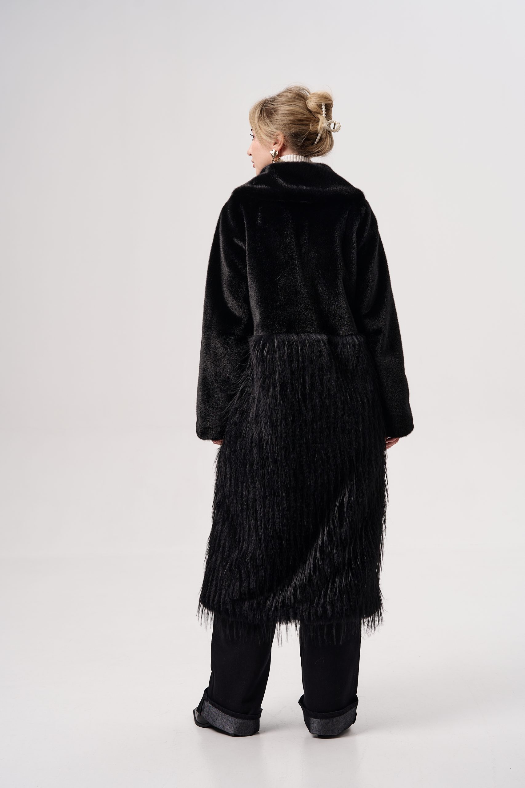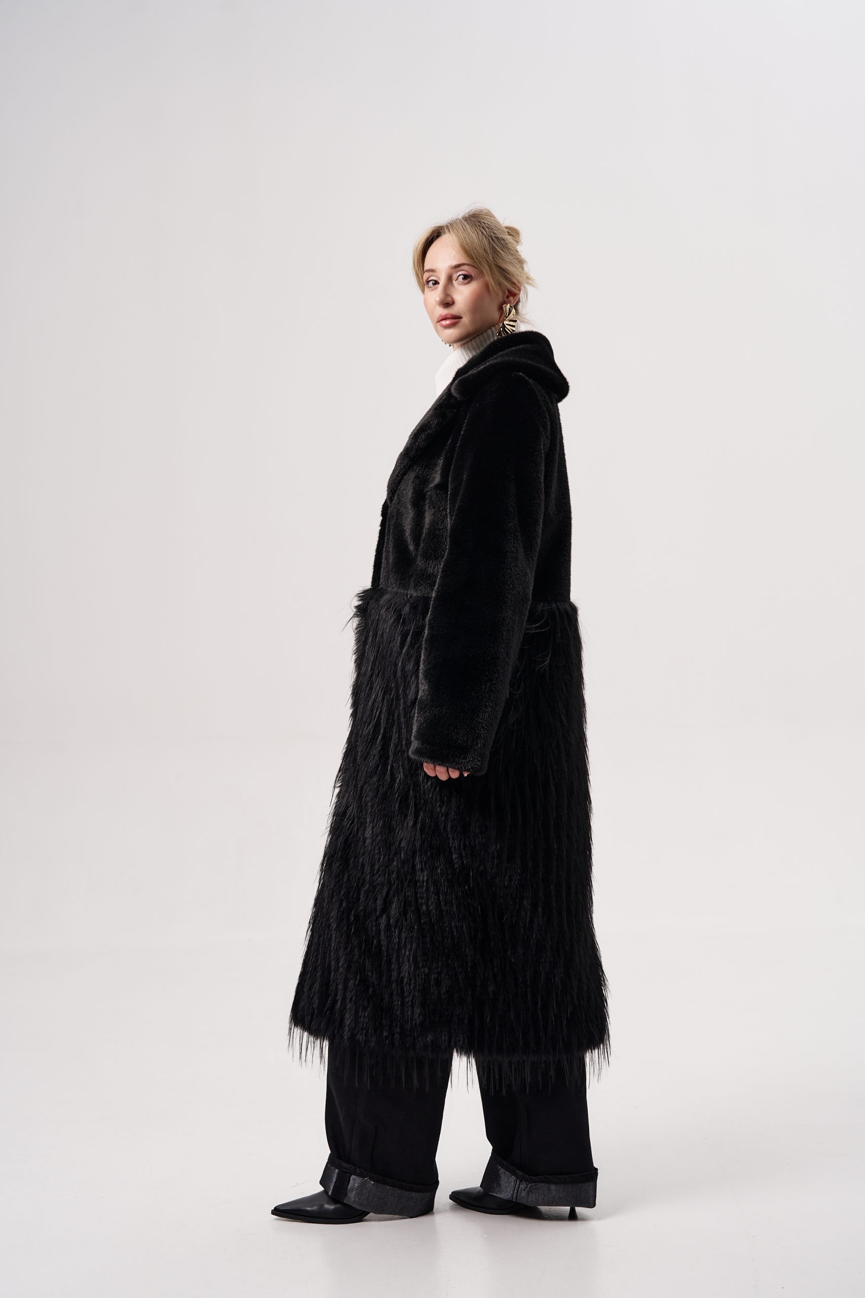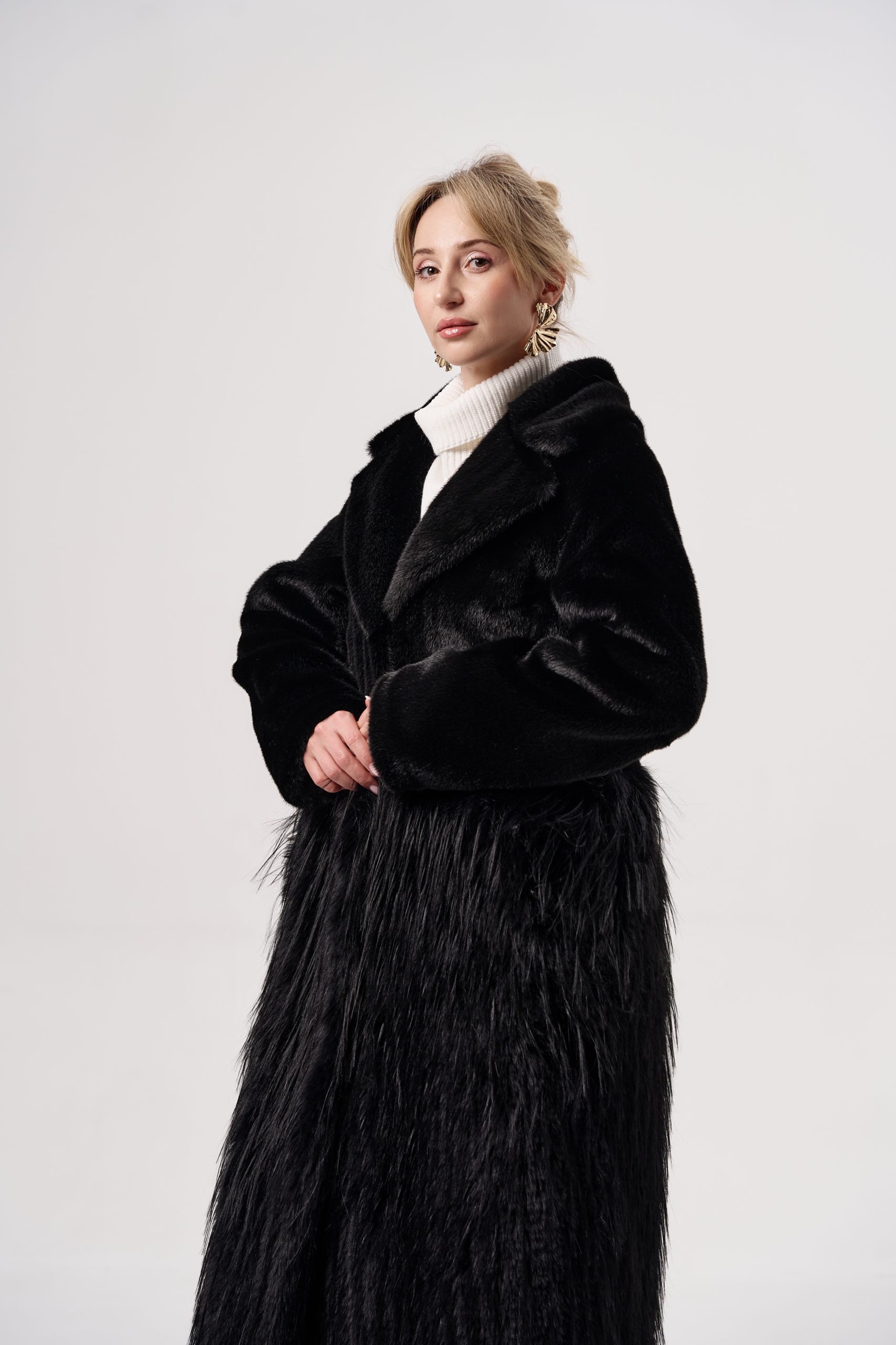 Шуба женская из экомеха норки+страус Alex ЭМ-351